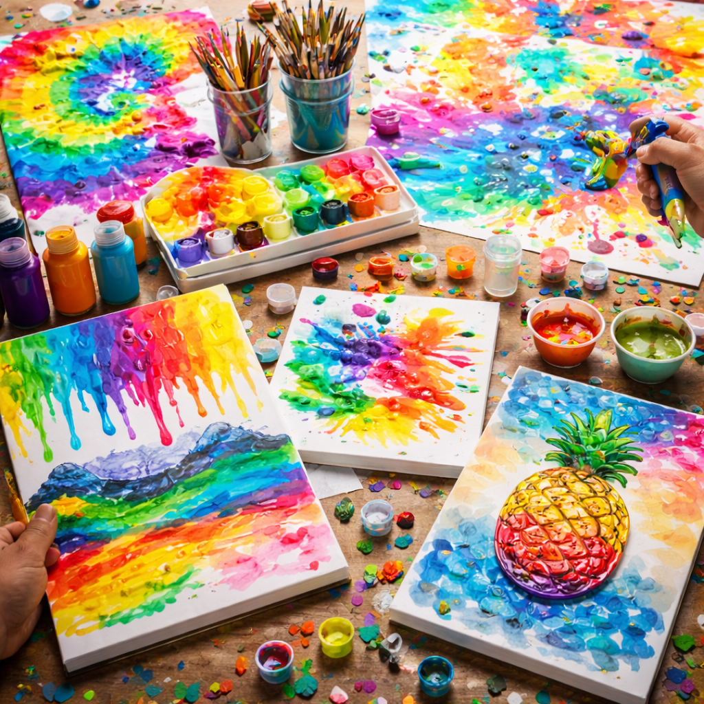 Camp Description: A high-energy, colorful week where kids paint every day! Campers explore canvas painting, color mixing, themed projects, large collaborative murals, and creative techniques that make every piece feel like a party. Perfect for young artists who love big colors, big brushes, and big fun.